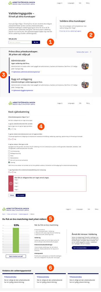This lead qualifying prototype both increases quality leads and reduces staff resources by overhauling the fragmented structure that was difficult for users to decipher. To secure employment Arbetsförmedlingen’s customers with expertise but not grades or certificates required support validating their professional experience which was done manually before this service.